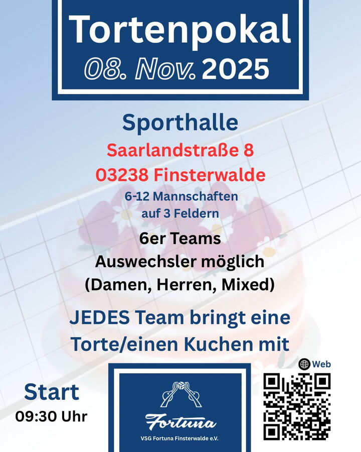 Anmeldung per Mail: tortenpokal@fortuna-finsterwalde.de (Teamname/Verein bitte angeben)